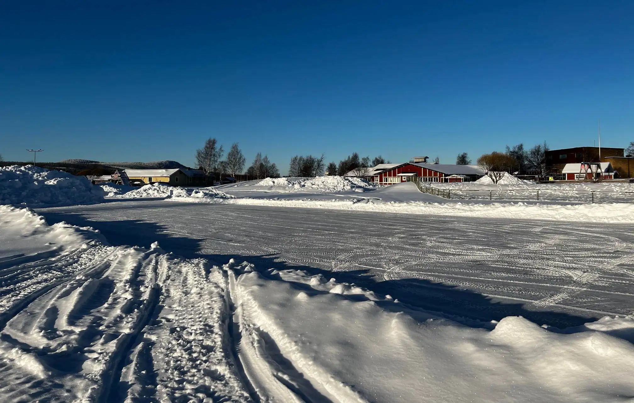 Once it is cold enough, an outdoor ice rink is constructed between Skogshallen ice rink and the library. There is lighting operated by a timer switch on the wall of Norrskenshallen.