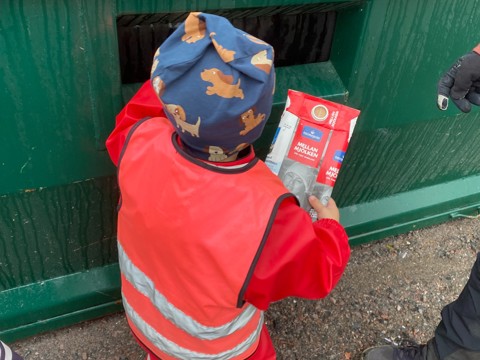 - Barnen har fått vara med att skölja ur, räkna antal förpackningar, klistrat lappar för varje gång vi har varit på återvinningscentralen, målat förpackningar, sett filmer på vad som händer med förpackningarna som återvinns. Vi sparar träd säger barnskötaren Mona Kylmänen.