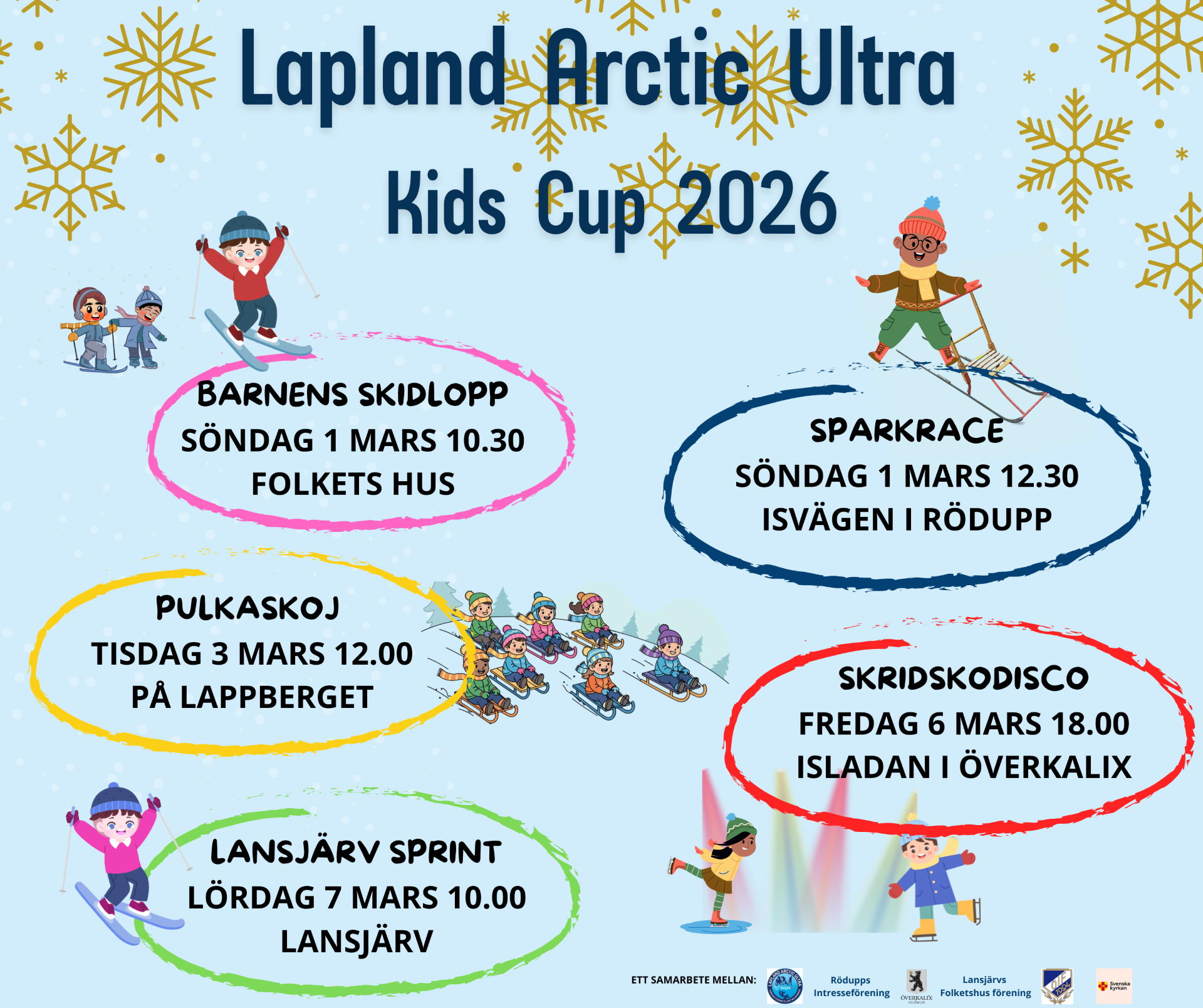 LAPLAND ARCTIC KIDS CUP - ett eget event för alla barn under sportlovet i anslutning till vinterloppet Lapland Arctic Ultra. Under veckan kan barn delta på en eller flera aktiviteter och få diplom.