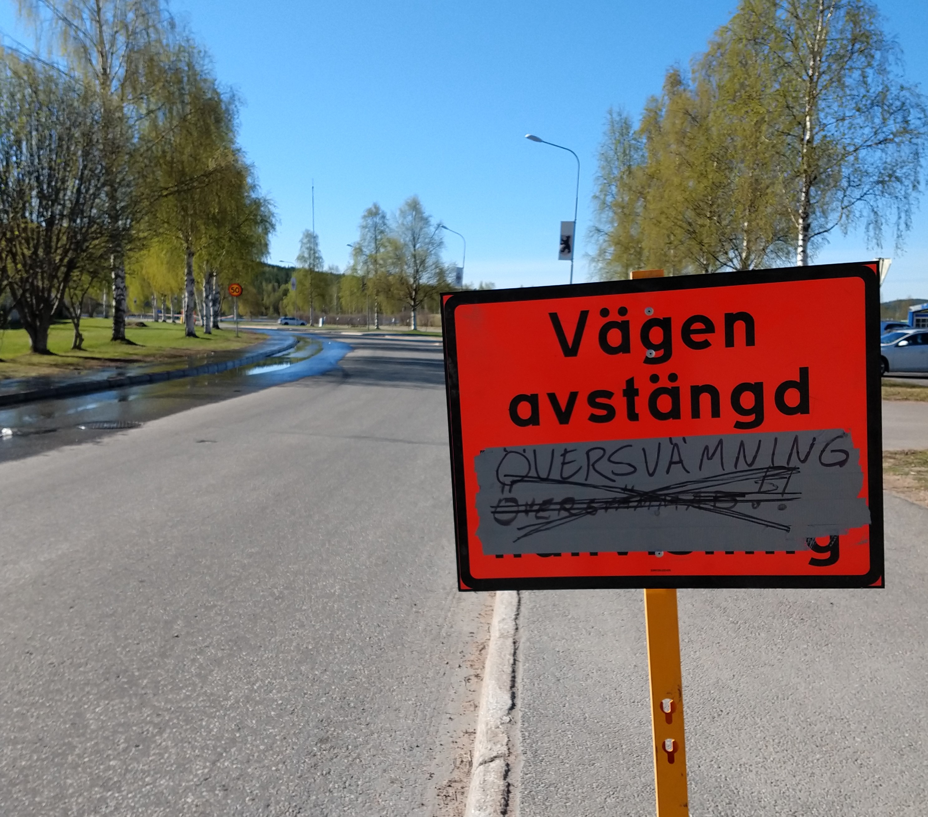 Vatten på vägen finns även i korsningen Skolgatan/Brännabergsvägen. Överkalix kommun uppmanar därför till försiktighet och att visa hänsyn till medtrafikanter.