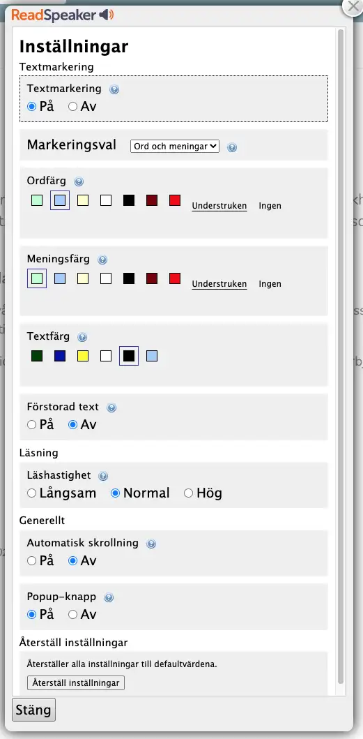 - Välja om du vill att texten ska markeras samtidigt som den läses