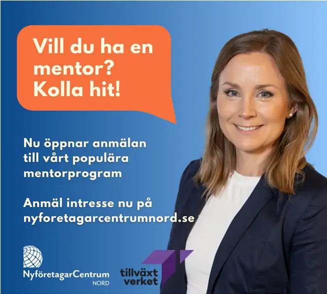 Ett helt år med någon som bara vill att du ska lyckas? Ja det är faktiskt exakt vad Nyföretagarcentrum Nords mentorprogram är. Under ett helt år får du som företagare en erfaren mentor vid din sida som bollplank och stöttepelare som hjälper dig nå dina mål.