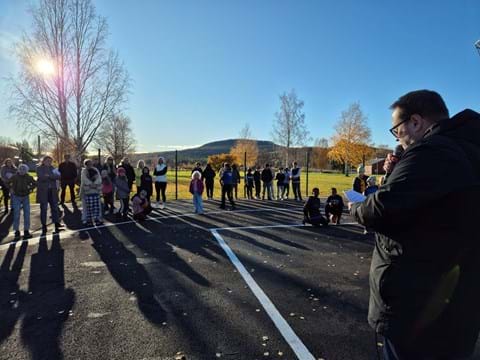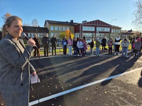 På plats i höstsolen fanns förutom barn och unga även föräldrar och ledare från ÖIF basket. Kommunalrådet Niclas Hökfors höll i invigningstalet. När det var dags att klippa bandet som dagen till ära hölls av Kommundirektör Jan Johansson och Framtidschef Jessica Wennberg fick Agadar Sami Mohamed ta saxen. Agadar som spelar i ÖIF basket var också en av de ungdomar som med hjälp av en lärare skrev det medborgarförslag som blev en basketplan.